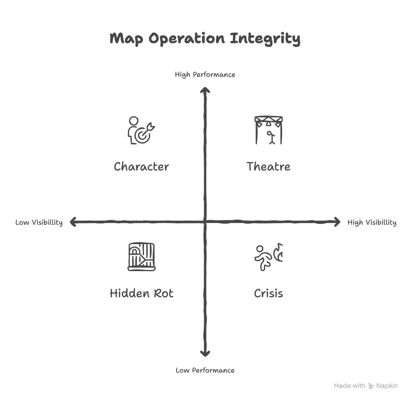 Now you can see your operation's integrity landscape. Where does character live? Where is performance theatrical? Where is the hidden rot?