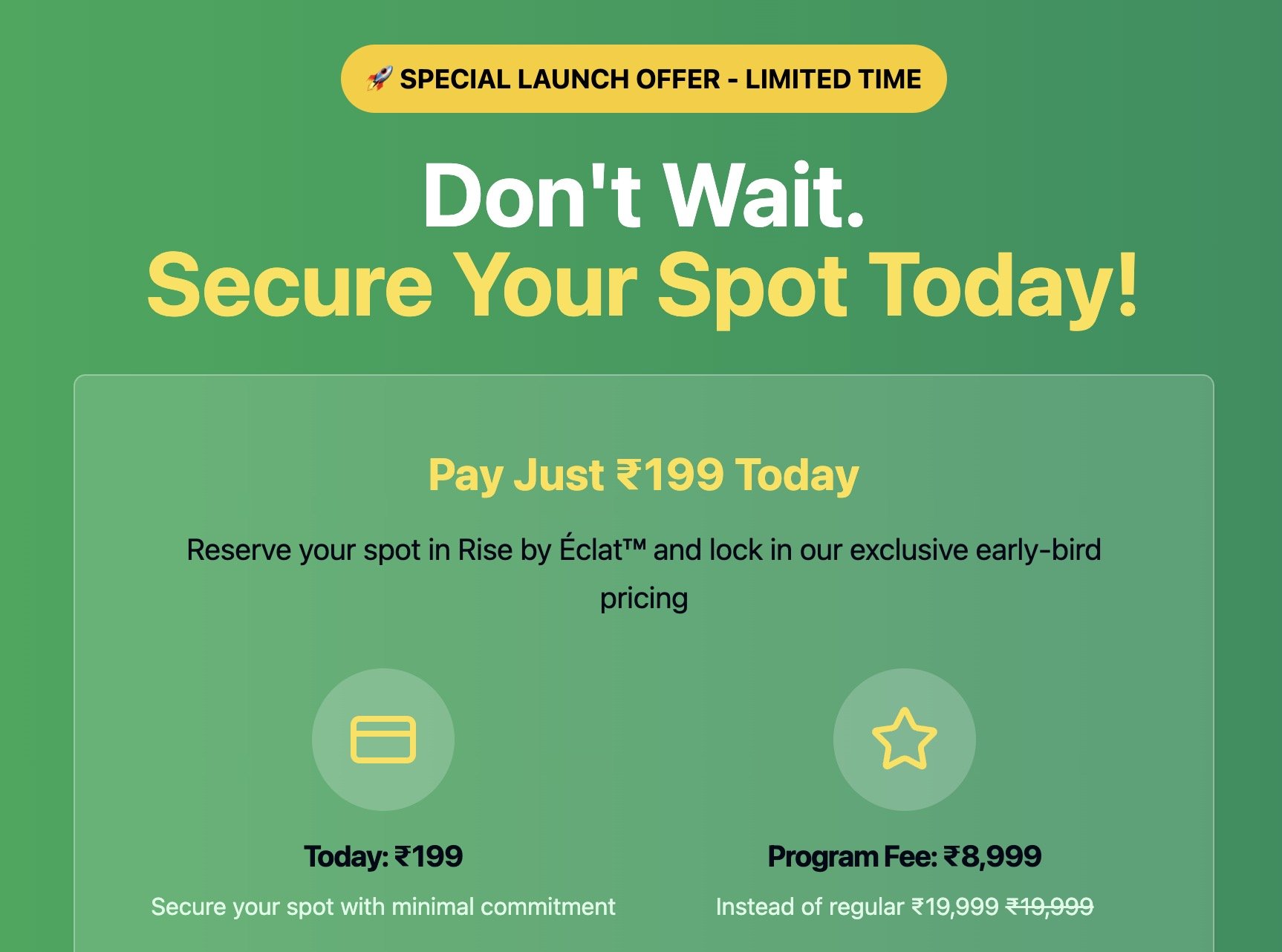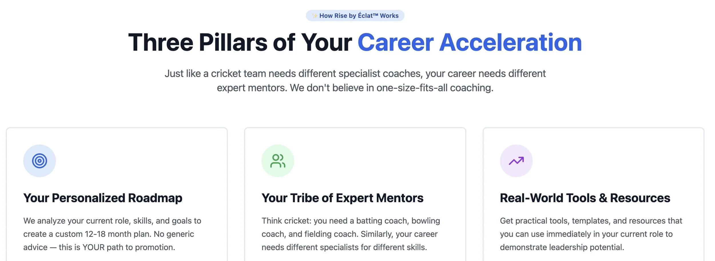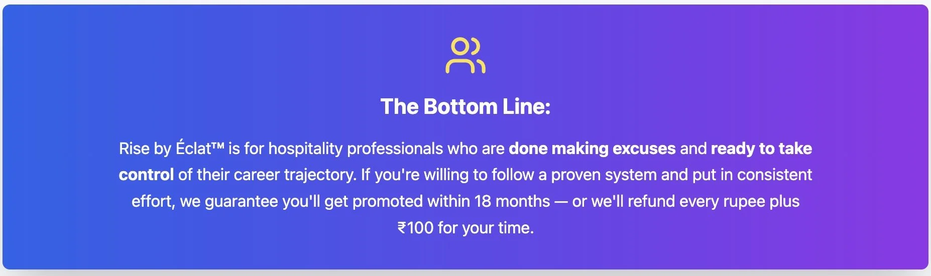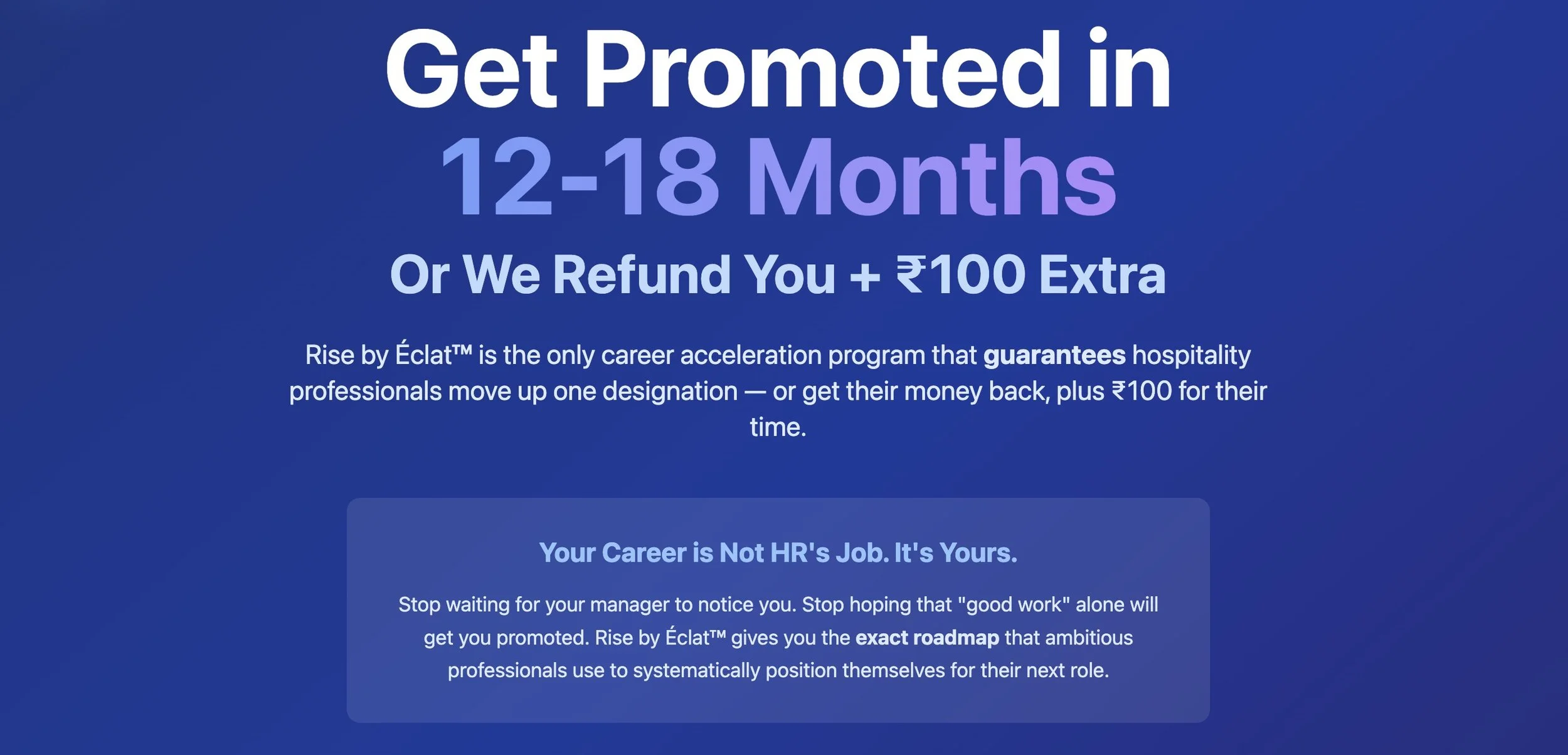 Most career courses give you generic advice. Rise by Éclat™ creates a personalized roadmap based on your specific role, experience, and goals. Plus, we guarantee results with our money-back promise — something no other program offers.