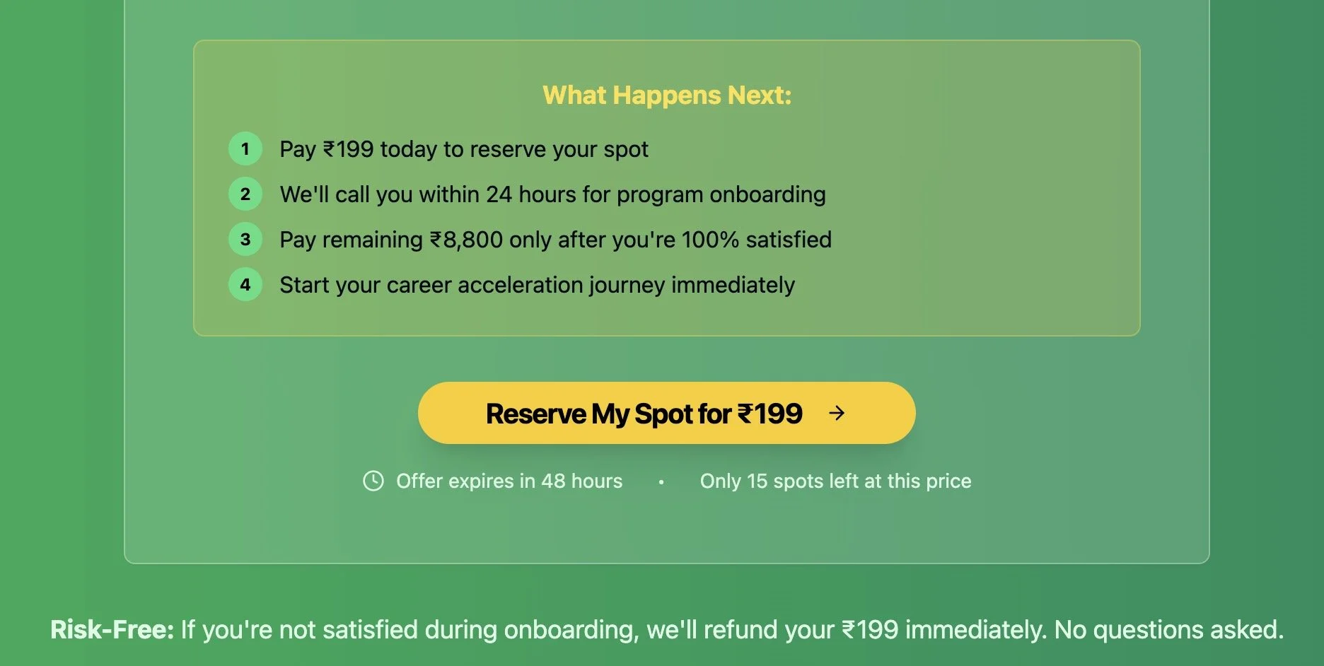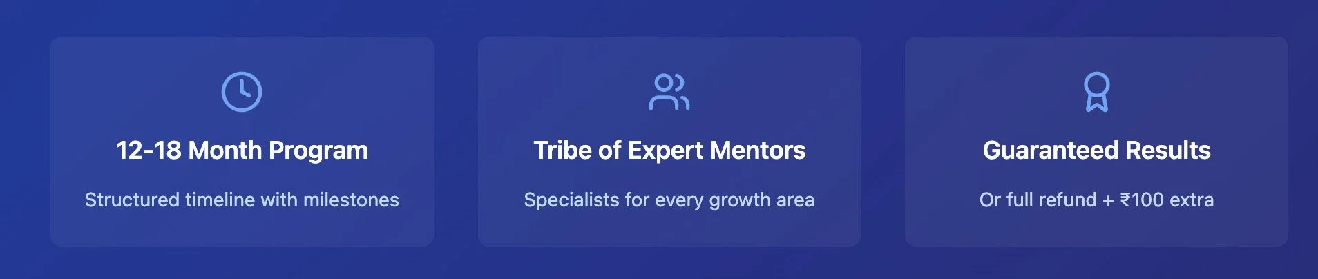 Simple: we refund your entire program fee plus ₹100 for your time. No questions asked, no hoops to jump through. That's how confident we are in our system.
